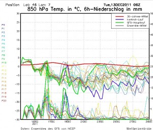 After a couple of heavy snowfalls last week, followed by further snow yesterday, the forecast is again for heavy snowfalls later this week. The ensembles indicate heavy falls on Friday and Sunday: