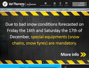 At the higher resorts about a meter of snow has fallen in the last few days, and another meter is expected over the next 24-36 hours. Méteo Chamonix is advising people to stay off the mountain today. Val Thorens are issuing warnings to travellers arriving or leaving this weekend, and many roads to higher resorts risk closure due to avalanche risks. In the Three Valleys, avalanche blasting began before 6am this morning, and electricity to many villages was cut.